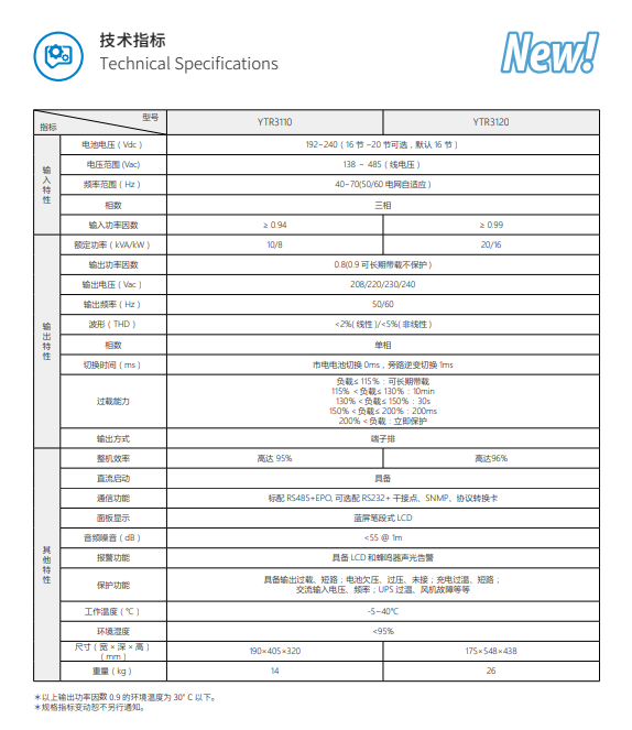 YTR系列三进单出UPS,是正弦波在线式高性能不间断电源,是专为金融、通信、保险、交通、税务、证券、能源、教育、政府、企业等系统的网络计算机房和小型智能设备(如测量装置、...